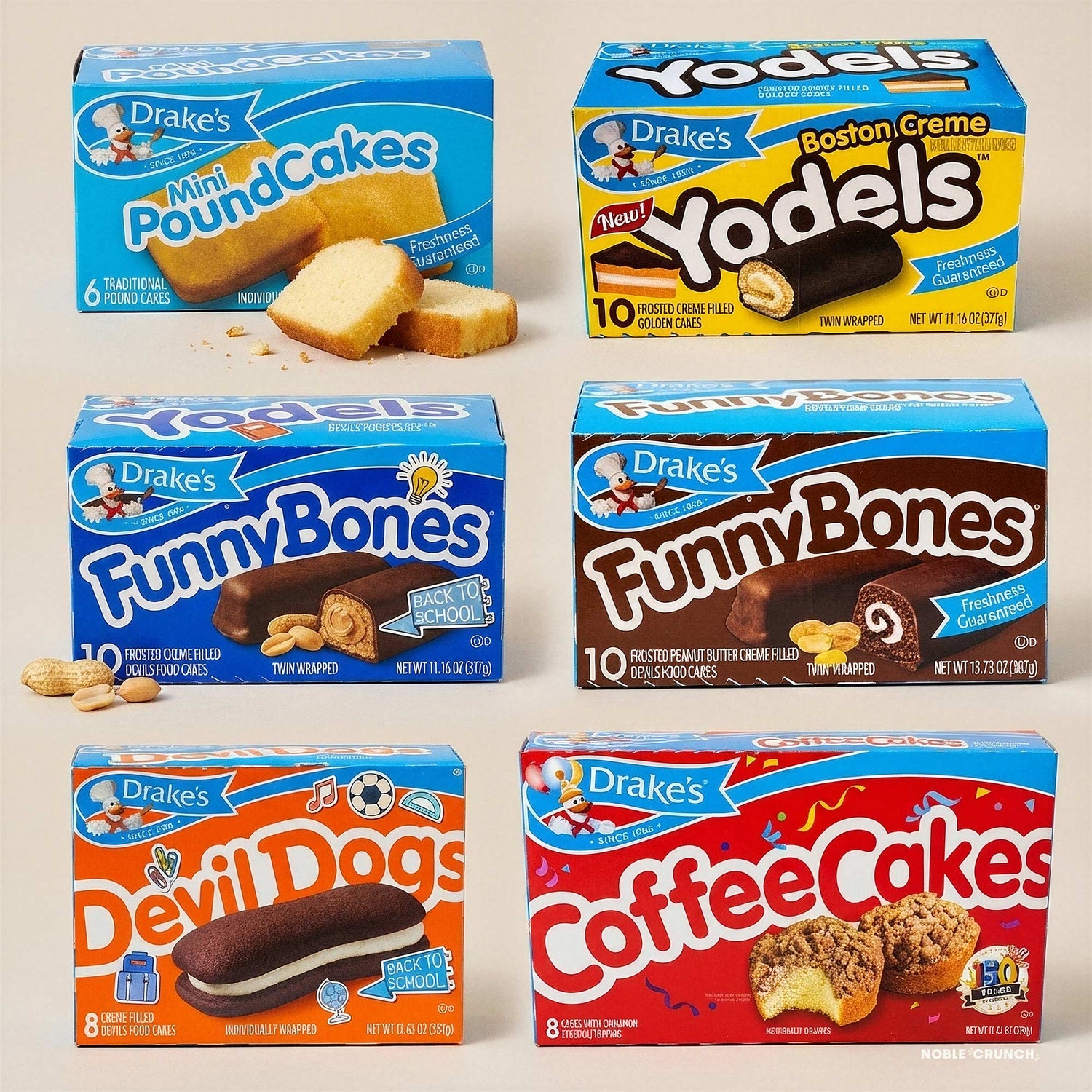 Drake's Variety Pack - Yodels, Coffee Cake, Devil Dogs, Boston Cream Yodels, Funny bones, Mini Pound Cakes - 6 Packs