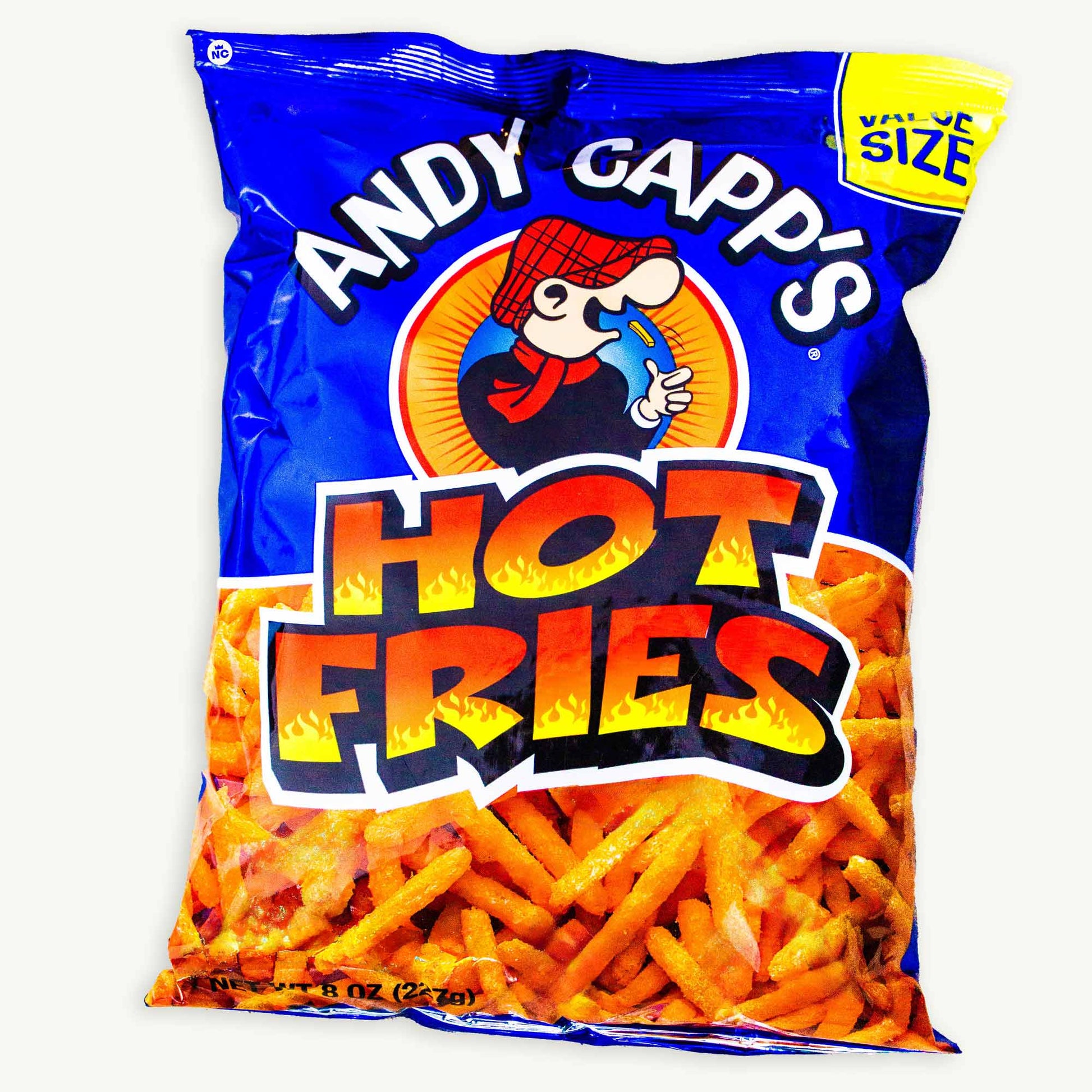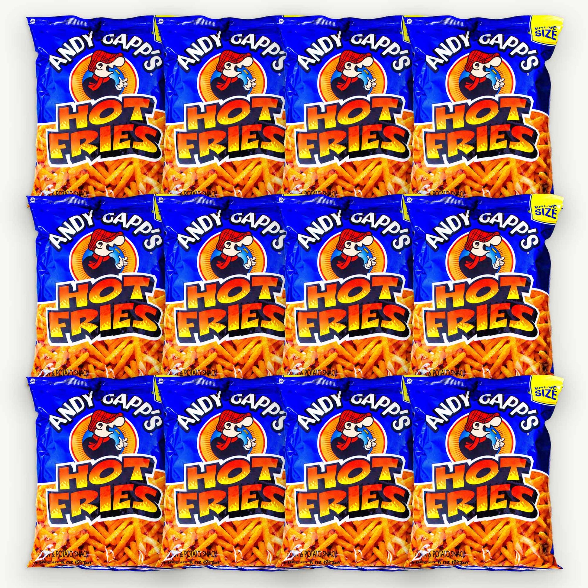 Andy Capp’s Hot Fries bring the heat with every bite. These crispy, corn-and-potato-based fries are seasoned with a zesty blend of spicy cheese flavor and a touch of tang. Packed in a large 8oz bag, they’re perfect for game nights, road trips, or anyone who craves a crunchy snack with attitude.