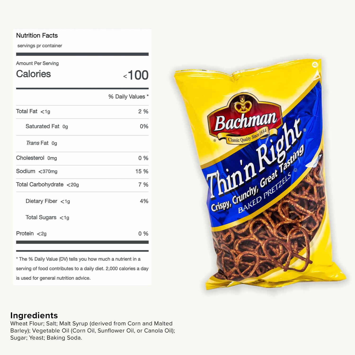 Savor the classic, wholesome taste of Bachman Thin Right Baked Pretzels! This 9oz bag is filled with perfectly thin, crispy pretzels that are baked to golden perfection. With a light, satisfying crunch and just the right amount of salt, these pretzels make an ideal snack for any occasion. Enjoy them on their own, paired with your favorite dips, or as a crunchy addition to your snack mix.