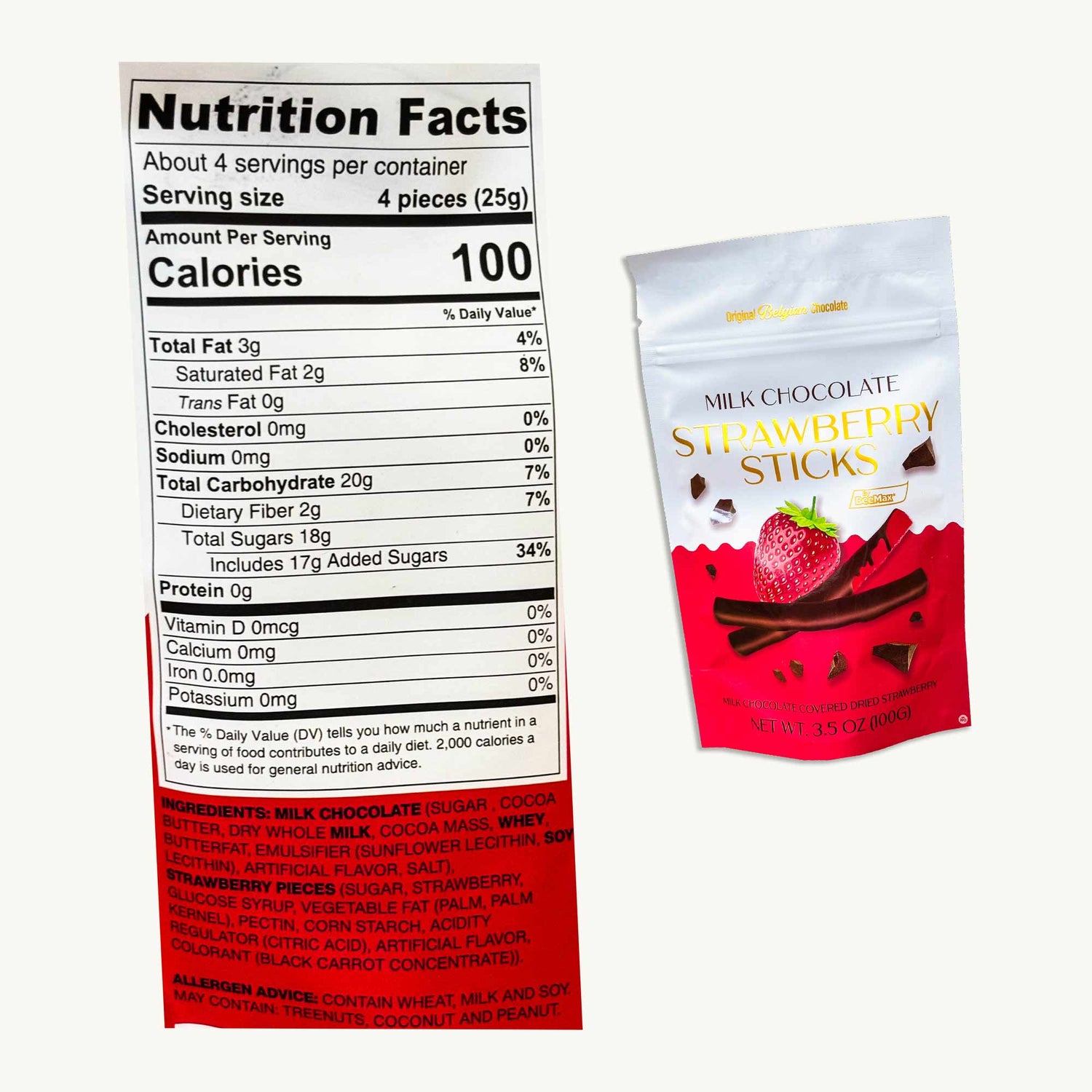 BeeMax Milk Chocolate Strawberry Sticks 3.5oz
