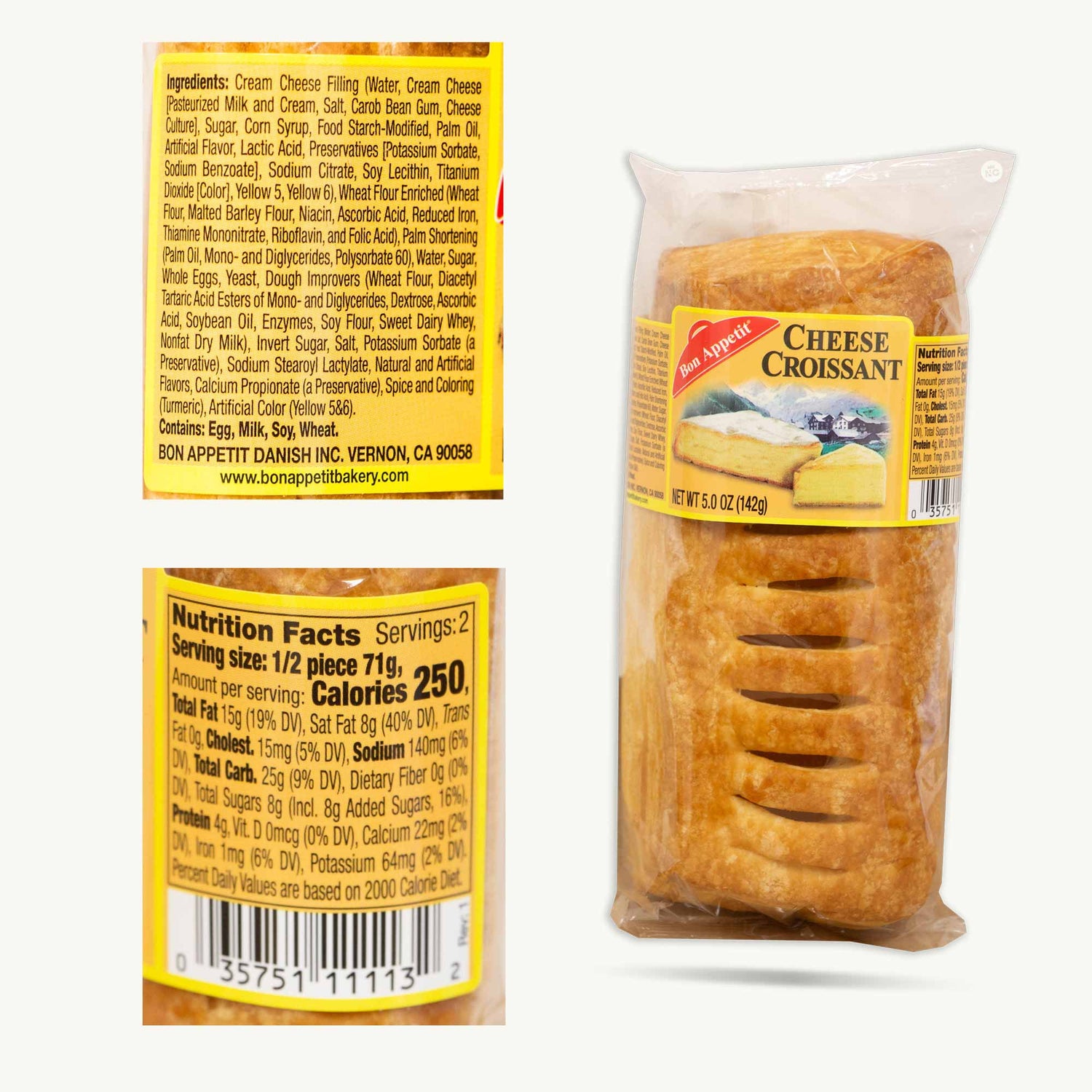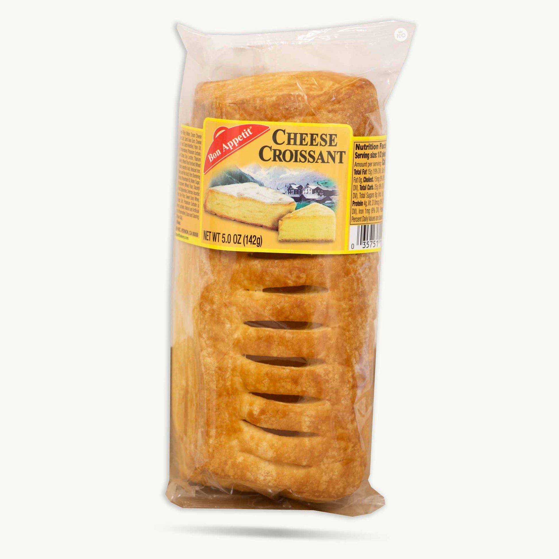 Delight in the rich, savory taste of Bon Appetit Cheese Croissant. This 5oz flaky pastry is filled with creamy cheese, making it a perfect snack or breakfast treat.