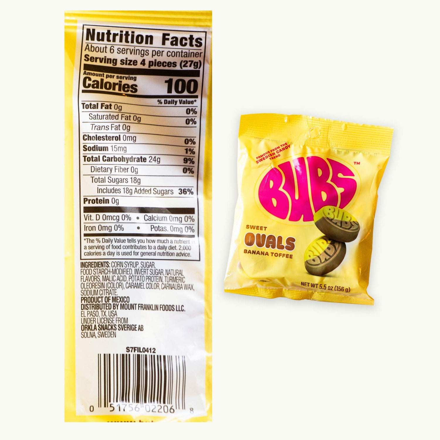 BUBS Sweet Ovals Banana Toffee Swedish Candy 5.5oz