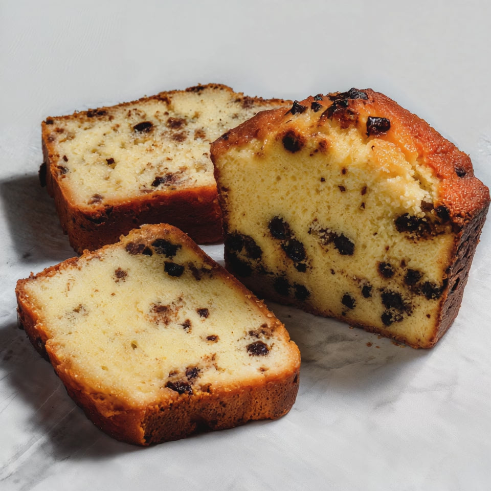 Rich, moist, and buttery, this pound cake is loaded with sweet chocolate chips that melt into every bite. Perfectly portioned for snacking or dessert, it delivers homemade flavor with a bakery-style finish that feels indulgent anytime of day