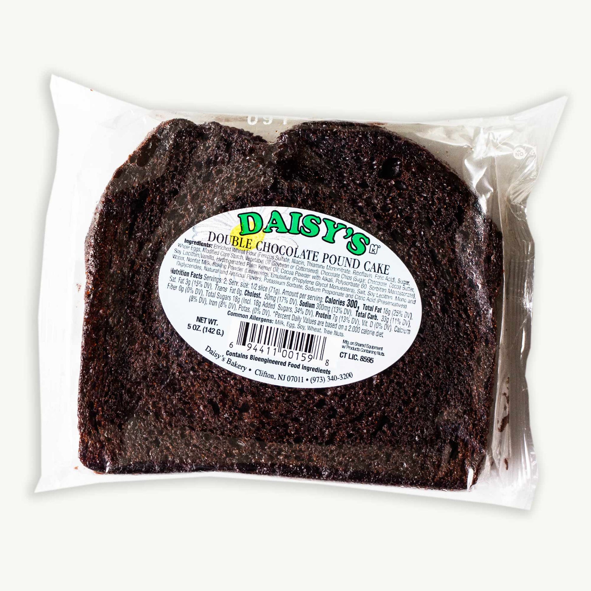 Daisy’s Double Chocolate Pound Cake is a rich, fudgy snack cake made for true chocolate lovers. Each 5oz slice is packed with deep cocoa flavor, moist pound cake texture, and melty chocolate chips throughout. Perfect with coffee, warmed up for dessert, or eaten straight from the pack.