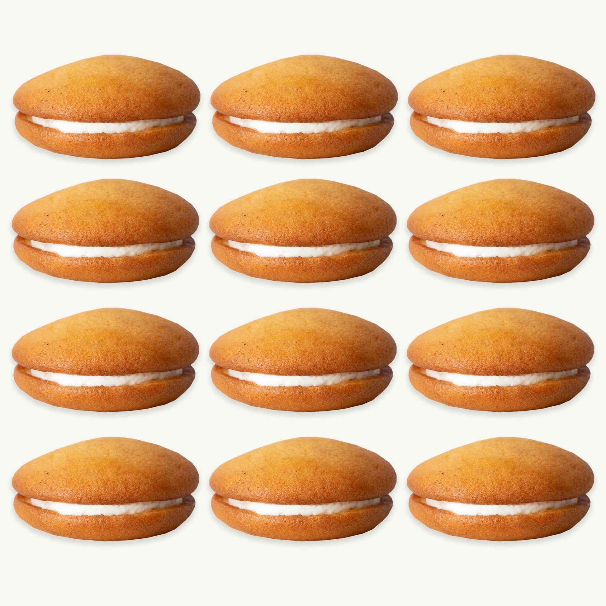 Enjoy the classic taste of Daisy's Vanilla Whoopie Pies. This 4oz pack features soft vanilla cakes filled with rich, creamy filling, perfect for snacking or sharing.