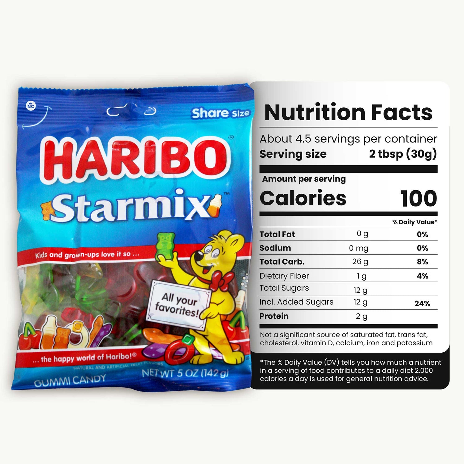 Experience a delightful medley of flavors and textures with Haribo's Starmix Gummy Candy. This 5oz assortment brings together the brand's most beloved gummy creations, offering a fun and tasty treat for all ages.
