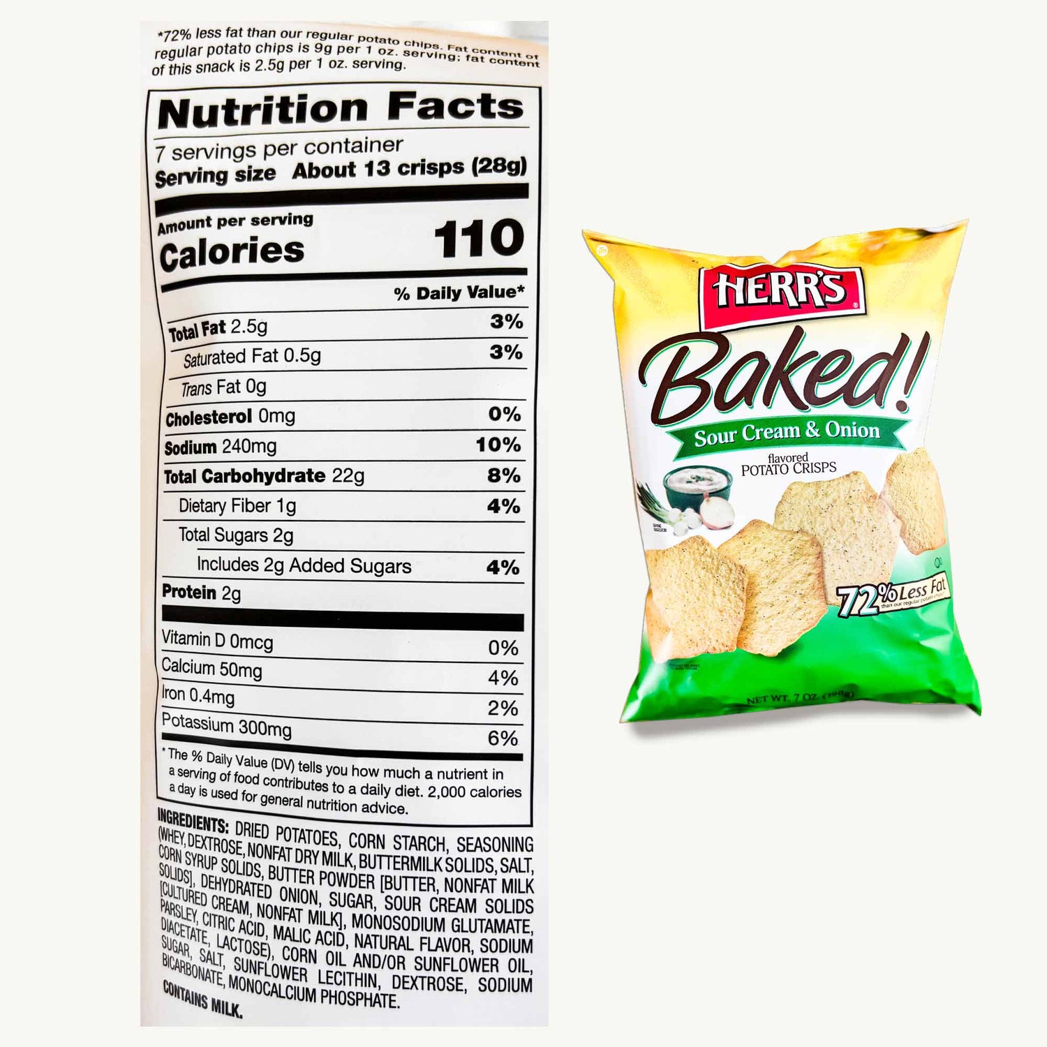 Herr's Baked Sour Cream Onion Potato Crisps 7oz