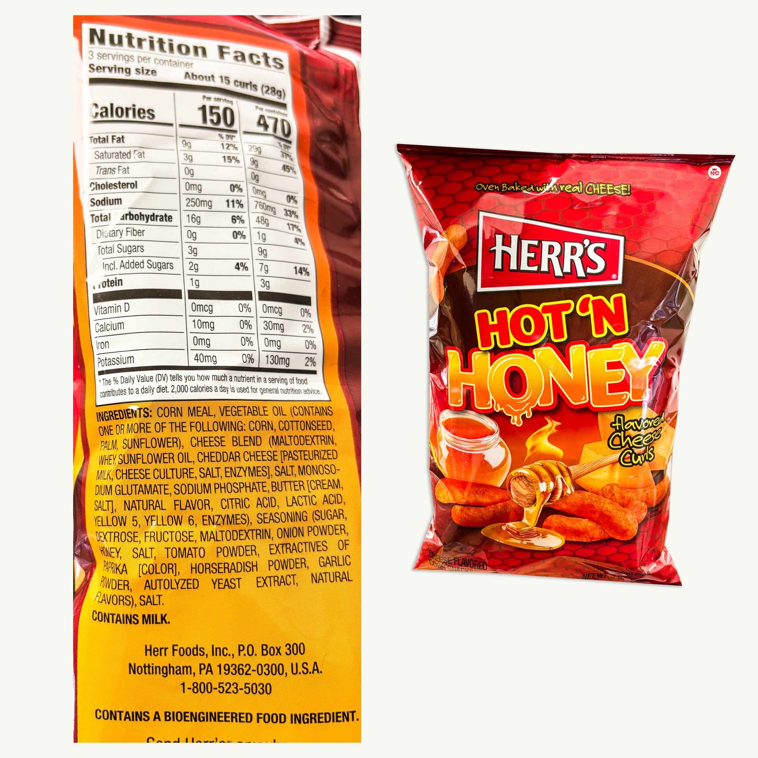 Spice up your snack time with Herr's Hot Honey Cheese Curls. This 3oz pack combines the sweetness of honey with a spicy kick, wrapped around crunchy, cheesy curls for a bold and delicious treat.