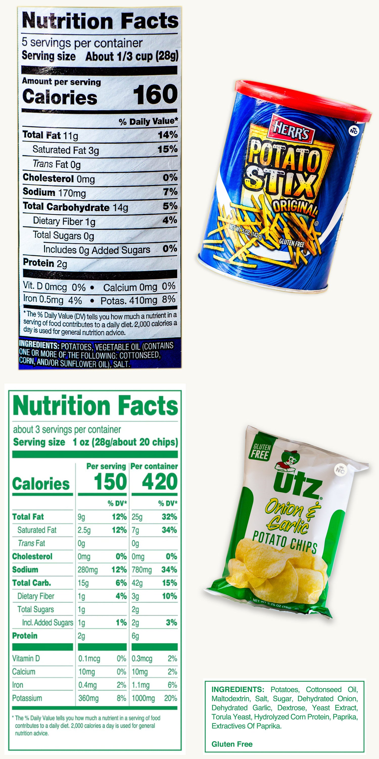 Herr's Potato Stix (4, 5oz cans) - Utz Garlic Onion Potato Chips (2.75oz)