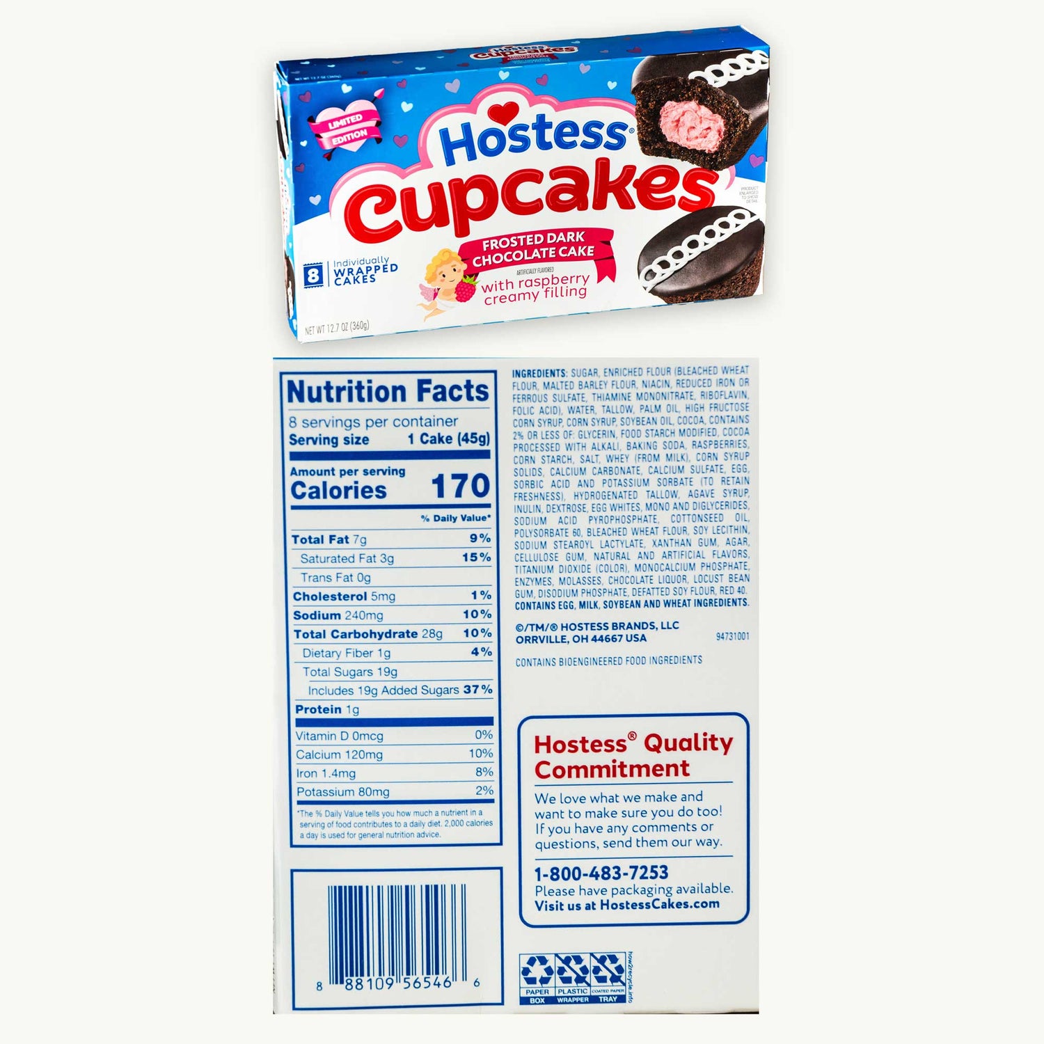 These Hostess Frosted Dark Chocolate Raspberry Cupcakes deliver an indulgent bakery-style experience in every bite. Moist dark chocolate cake is filled with sweet, tangy raspberry crème, then topped with smooth chocolate frosting and the classic Hostess squiggle. Perfectly portioned and irresistibly rich, they’re made for dessert lovers who crave bold flavor combinations.