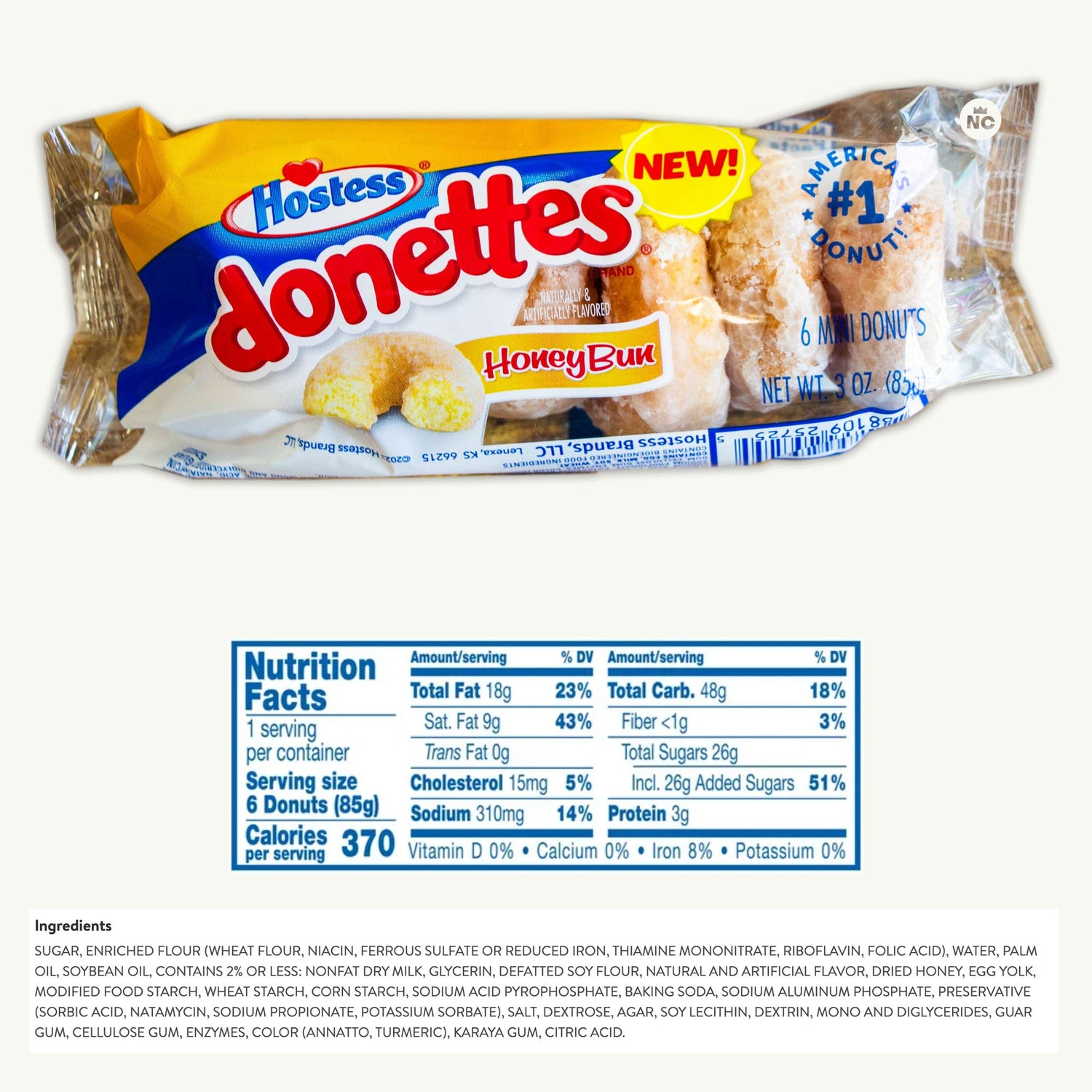 Sweeten your snack scene with Hostess Honey Bun Donettes! Six mini donuts glazed in honey perfection, ready to make your taste buds dance. It's honey, it's fun—it's a mini bun run!