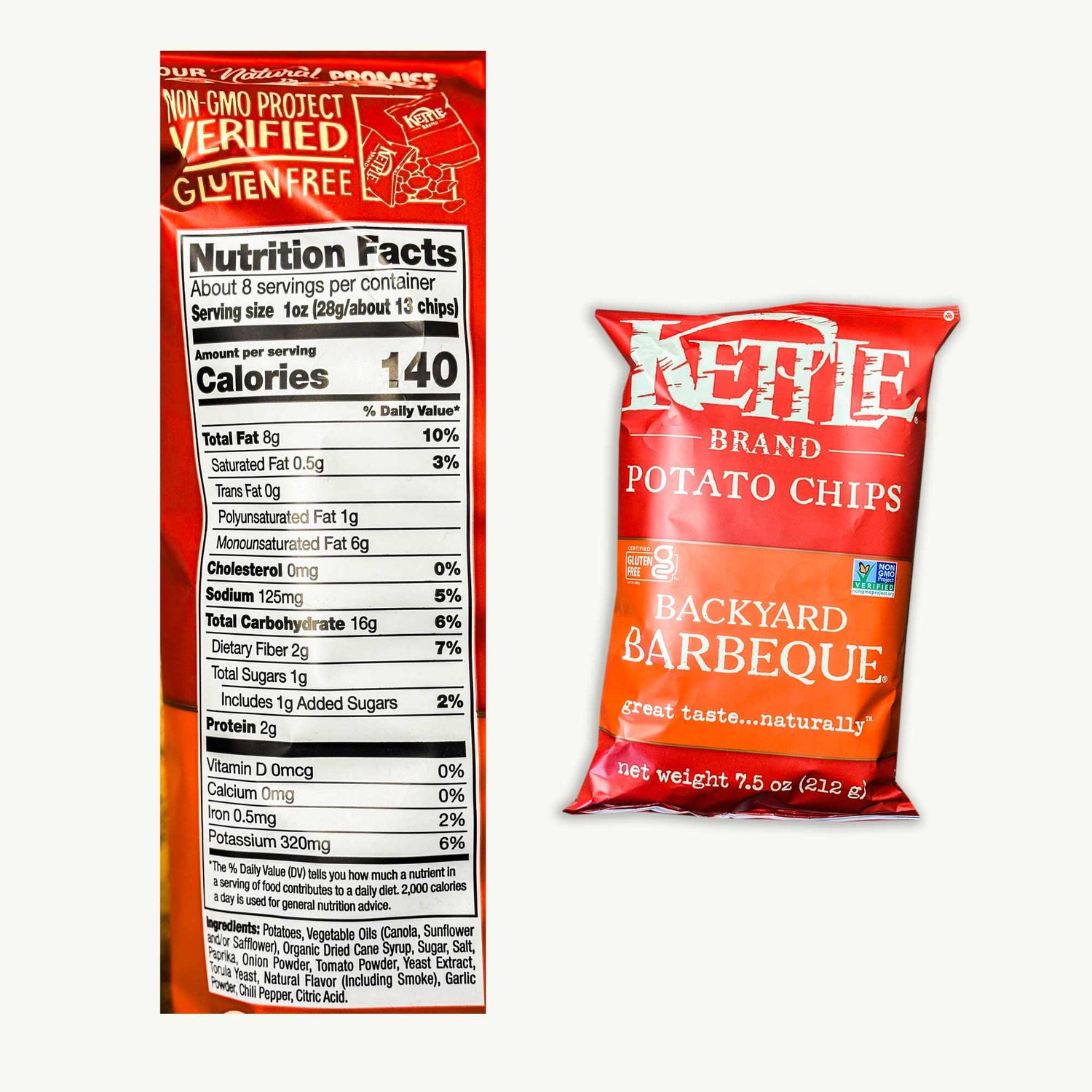 Enjoy the classic flavors of a backyard cookout with Kettle Brand Backyard BBQ Potato Chips. Expertly kettle-cooked to deliver an irresistibly hearty crunch, these chips combine sweet, smoky, and tangy barbecue flavors for a taste that's authentically delicious. Crafted from premium, non-GMO potatoes, these chips provide the perfect snack for gatherings, picnics, or satisfying your everyday snack cravings.