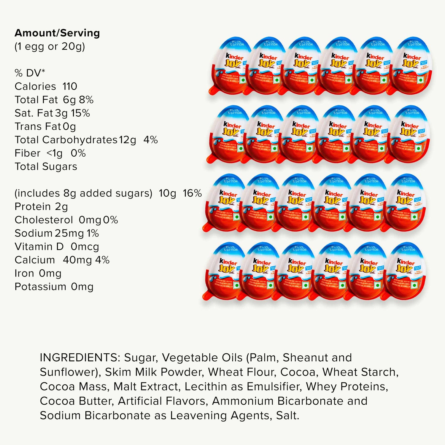 Kinder Joy Surprise Chocolate Egg Blue Edition is the ultimate treat that combines smooth, creamy chocolate with an exciting surprise toy inside. This 0.7oz (20g) egg features a unique two-part designโone half filled with rich milk and cocoa cream with crispy wafer bites, and the other containing a fun collectible toy for added excitement.