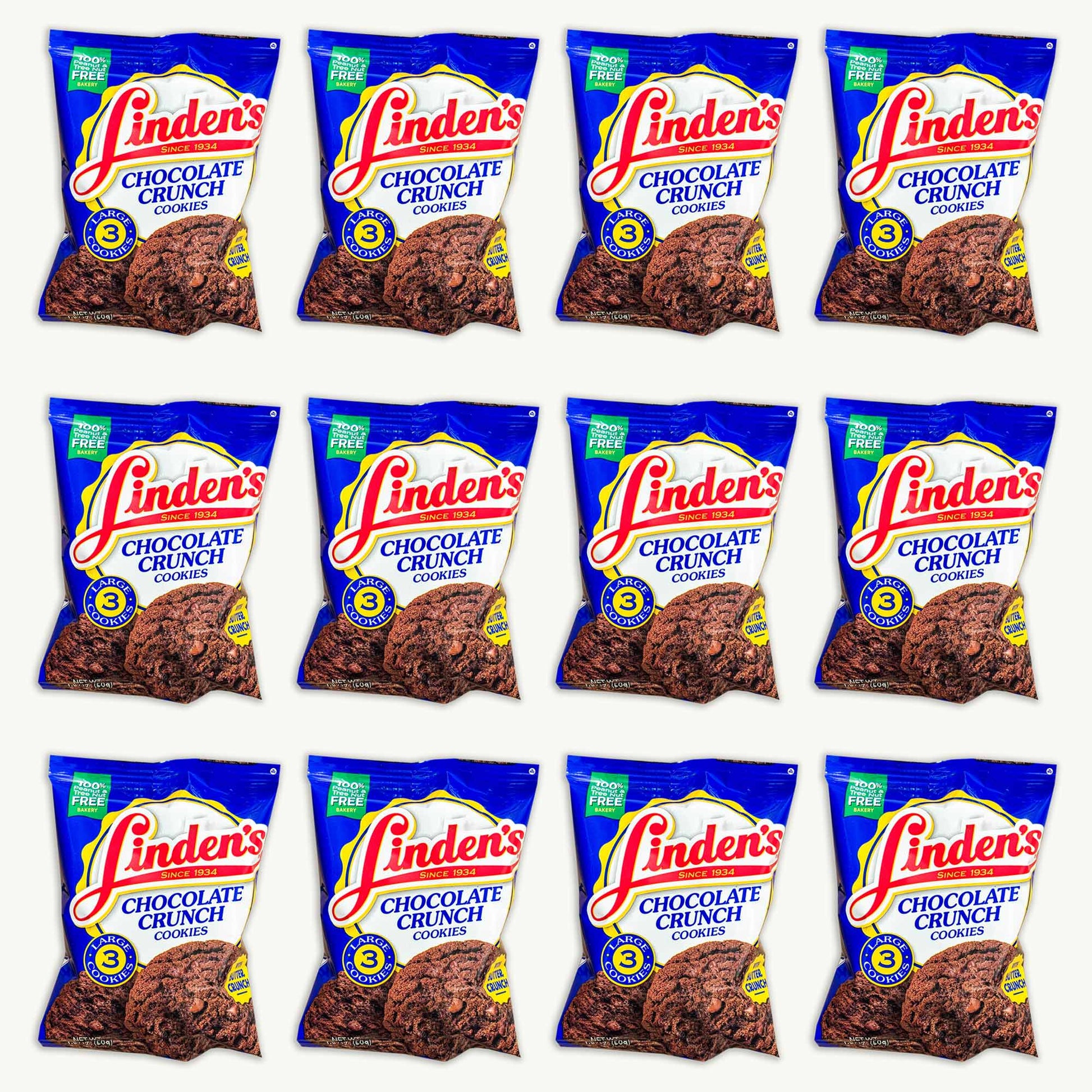 Satisfy your sweet tooth with Linden's Chocolate Crunch Cookies. Each pack contains three large, deliciously crispy cookies infused with rich, decadent chocolate flavor, offering a perfectly satisfying crunch in every bite. Individually wrapped in a convenient 1.8oz package, they're ideal for snacking at home, school, work, or wherever your cravings strike.