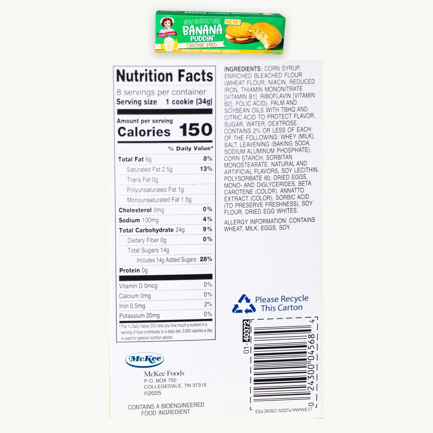 Bring home the comfort of classic banana pudding in a perfectly portioned snack. Little Debbie Banana Puddin Creme Pies feature soft vanilla cookies filled with rich banana-flavored crème, delivering a smooth, sweet taste that feels nostalgic and indulgent. Individually wrapped for freshness, these treats are ideal for lunchboxes, quick desserts, or anytime cravings.