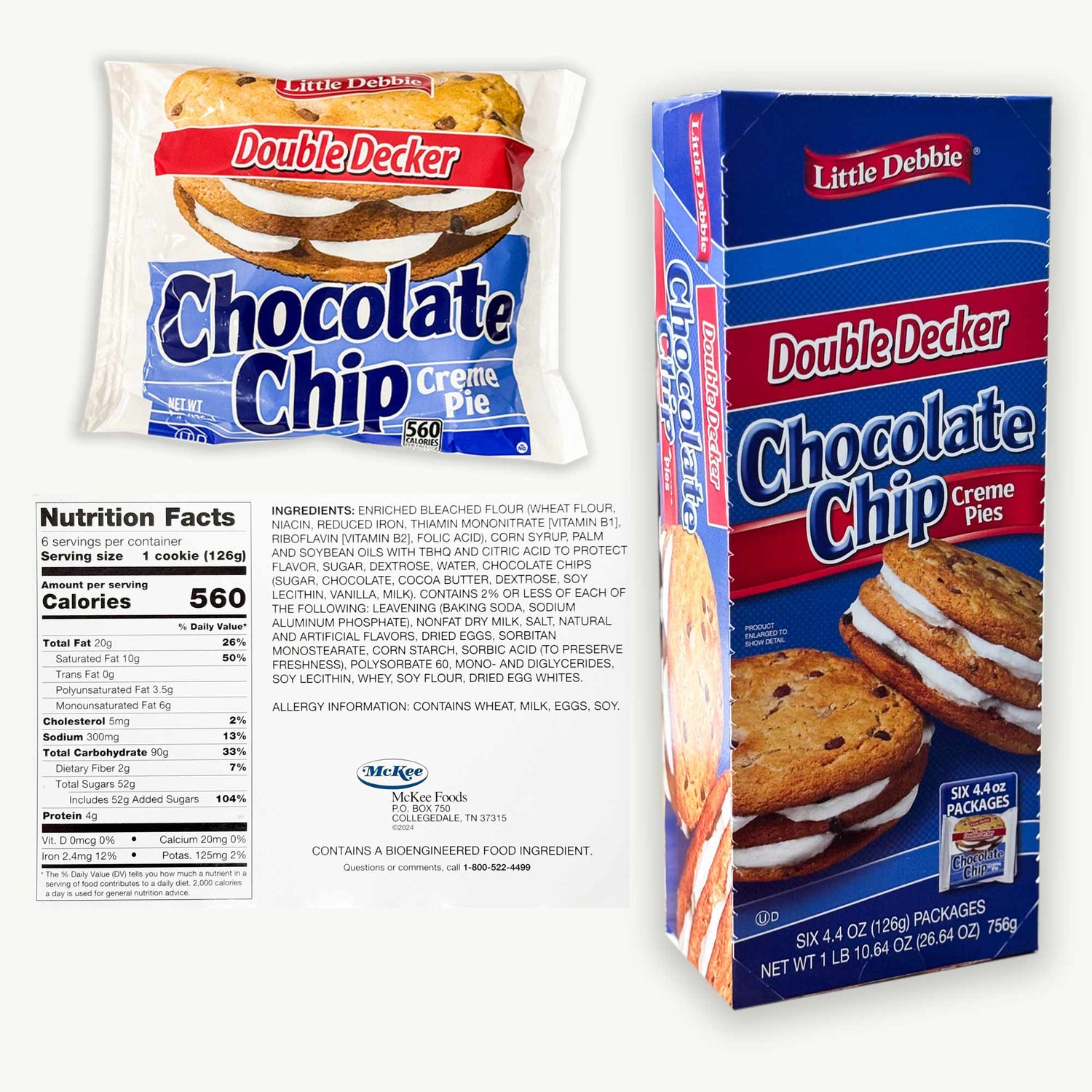 Indulge in the ultimate sweet treat with Little Debbie's Double Decker Chocolate Chip Creme Pie. This delightful snack features three soft, chewy chocolate chip cookies layered with smooth, rich creme filling.