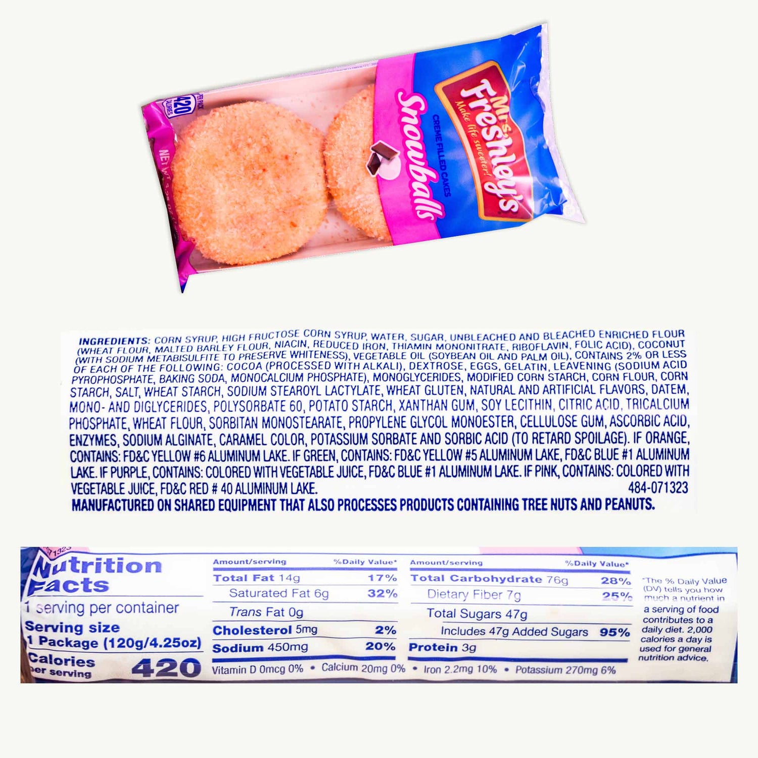 Indulge in Mrs. Freshley's Snowballs. This 4.25oz single-serve treat features soft, moist cake topped with fluffy marshmallow and coconut for a classic, sweet delight.