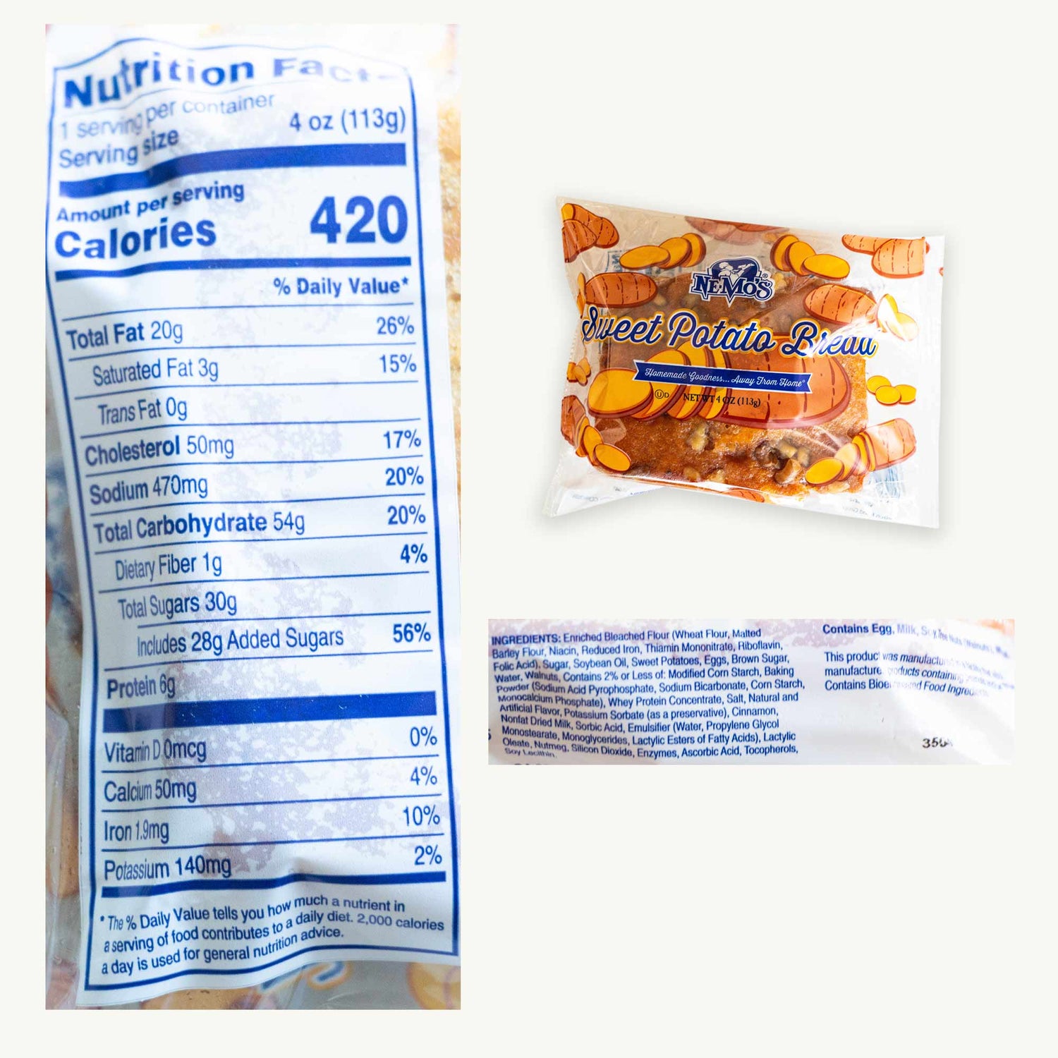 Nemo’s Sweet Potato Bread is a soft, bakery-style loaf infused with real sweet potatoes and warm spices for naturally comforting flavor. Each 4oz serving delivers the perfect balance of sweetness and texture, baked fresh for an indulgent treat that feels homemade. Great for on-the-go breakfasts, afternoon snacks, or gifting.
