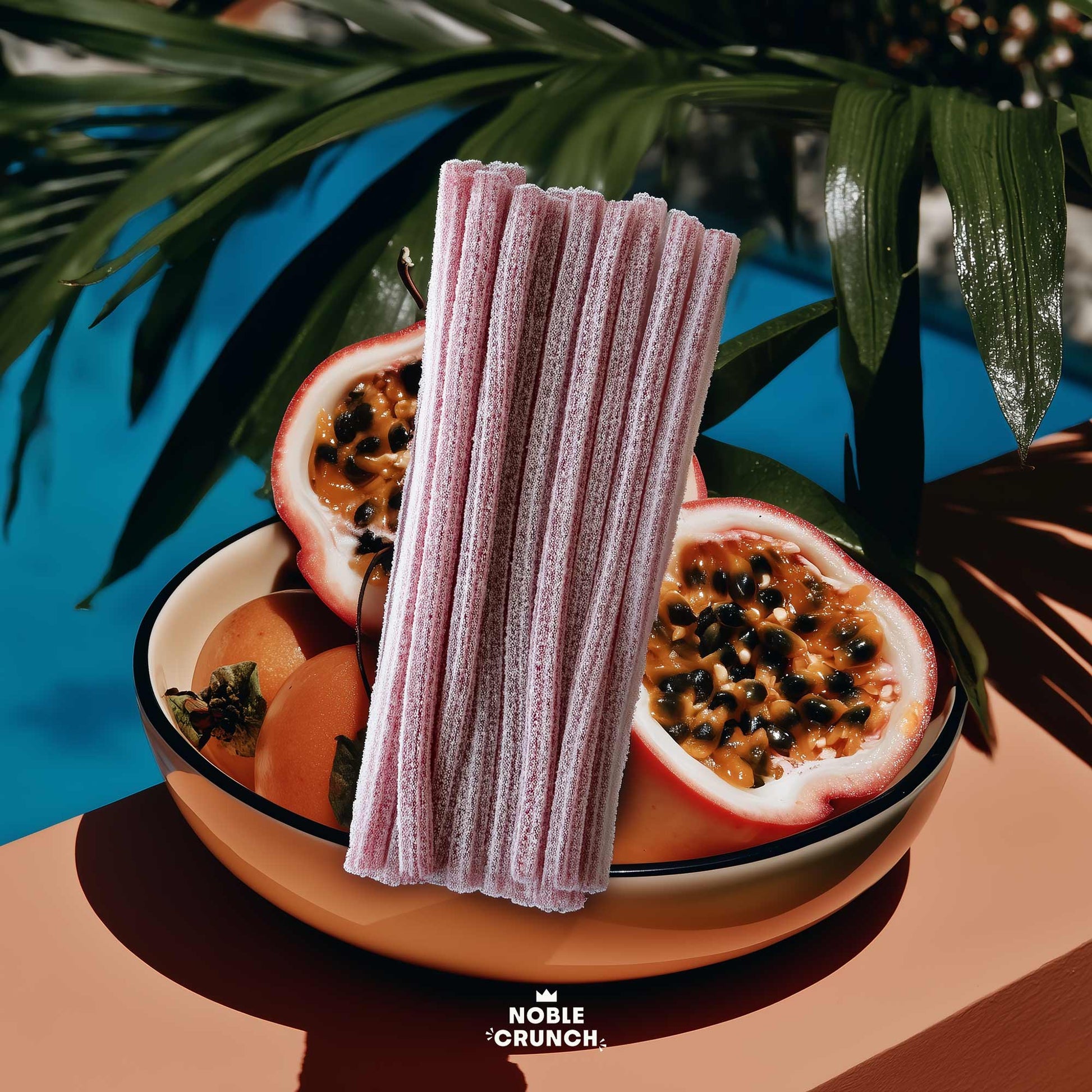 Tropical passion fruit meets ultra-sour sugar in these chewy, flavorful candy straws. With every bite, you’ll get tangy citrus zip and fruity sweetness that hits hard.