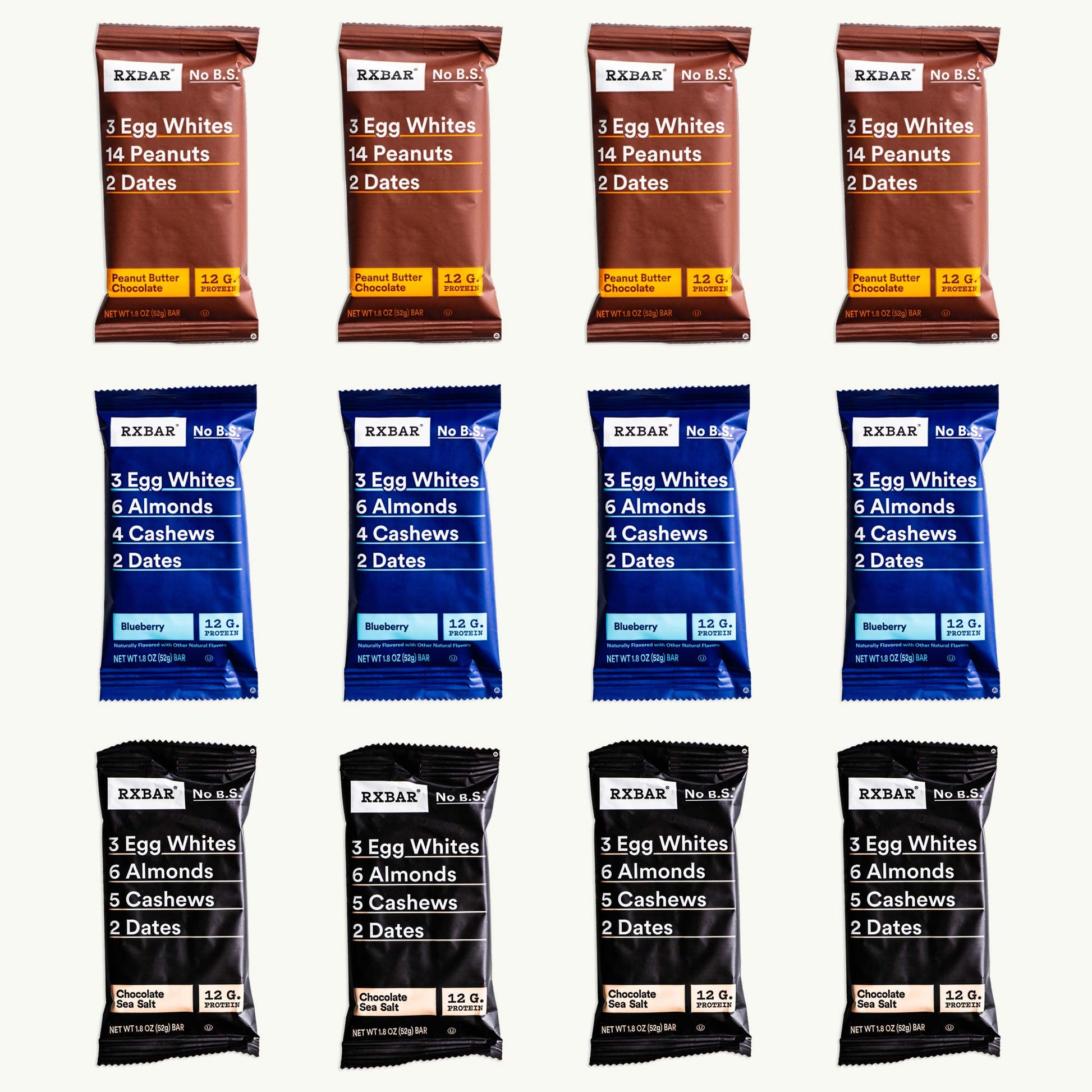 RXBAR Protein Bar 12g Variety Pack - Peanut Butter Chocolate, Blueberry, Chocolate Sea Salt - 12 Items