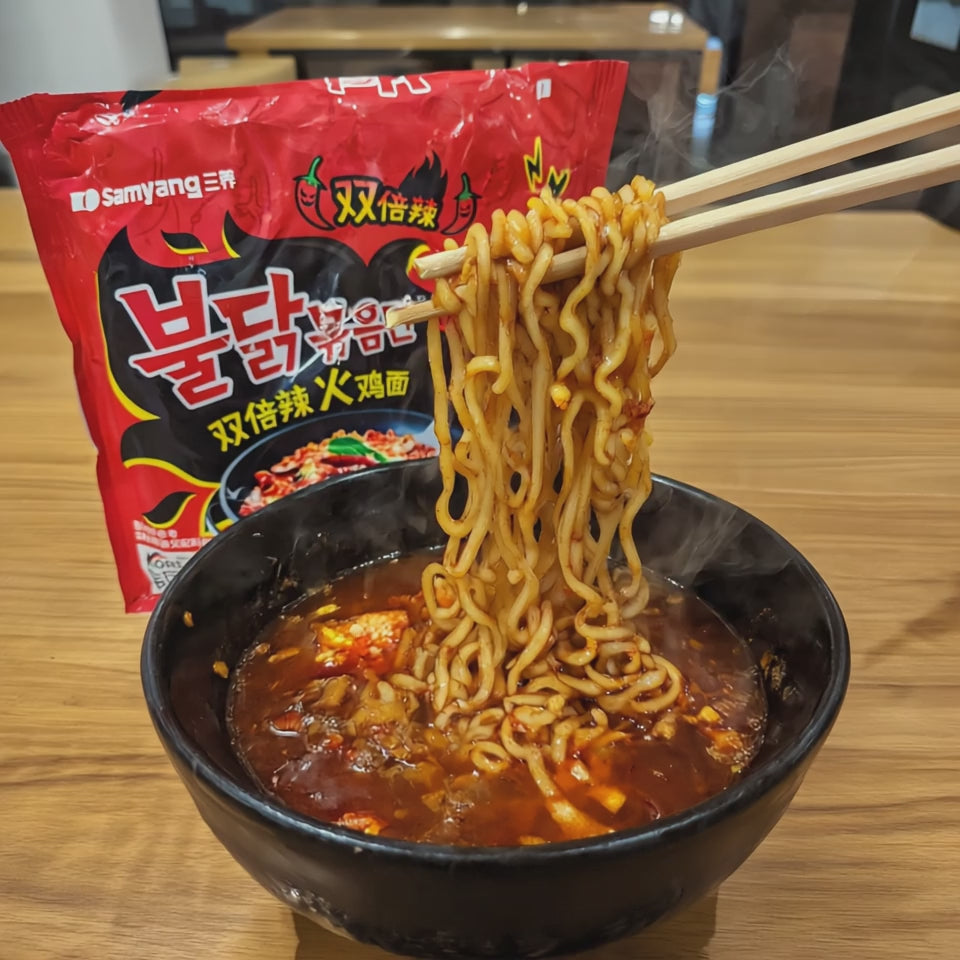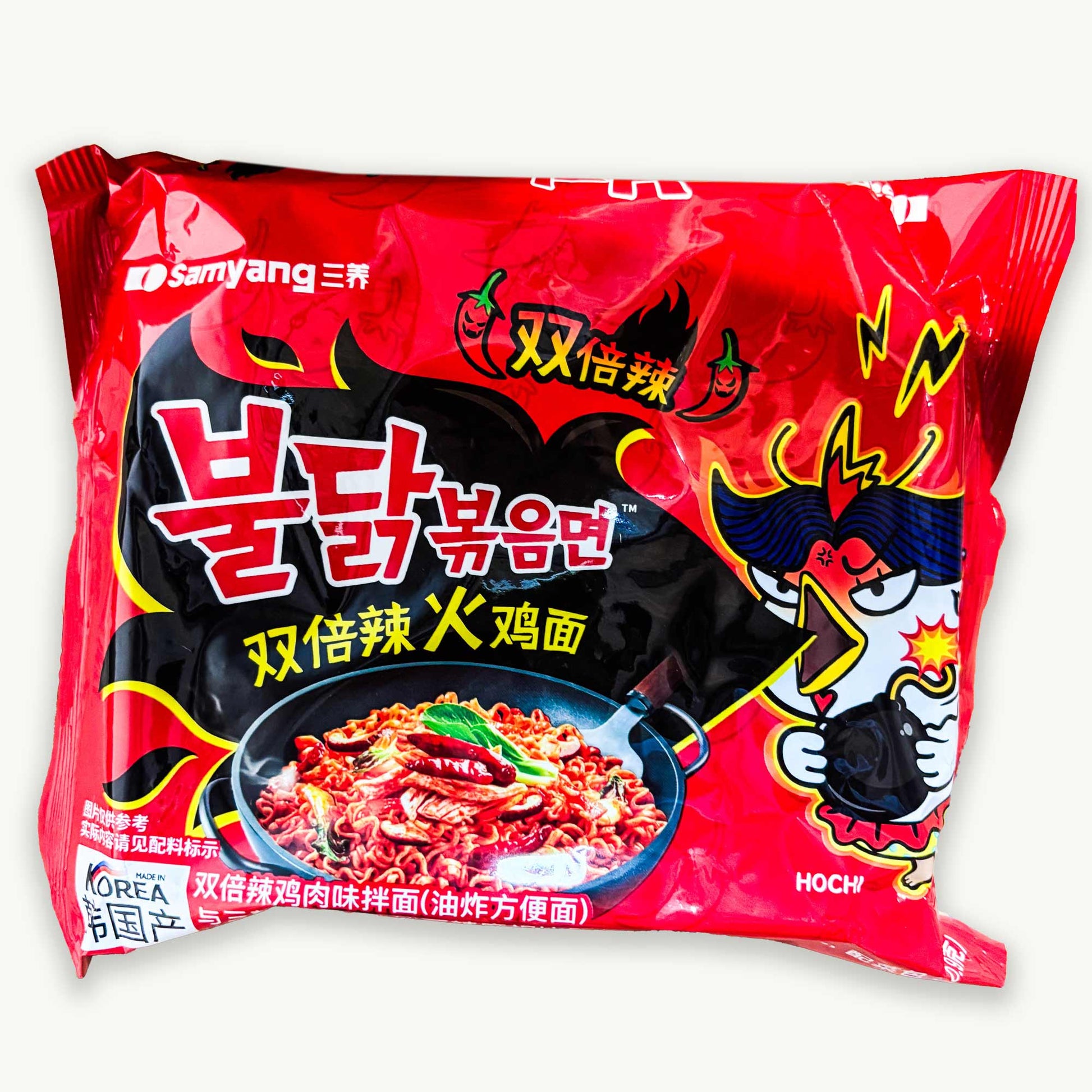 Turn up the heat with this fiery Korean ramen — double the spice of the original Buldak for an intense, tongue-tingling kick. Thick, chewy noodles soak up the bold sauce, delivering a flavorful and satisfying experience for true spice lovers