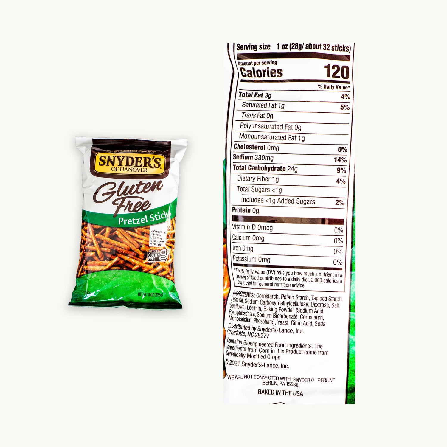 Snyder’s of Hanover Gluten Free Pretzel Sticks deliver the signature crunch and golden taste of classic Snyder’s — now baked for gluten-free enjoyment. Made with a blend of potato, corn, and tapioca starches, these crisp, perfectly salted sticks offer a light, airy texture and real pretzel flavor in every bite. Certified gluten-free and dairy-free, they’re the ideal choice for mindful snackers who don’t want to compromise on taste.