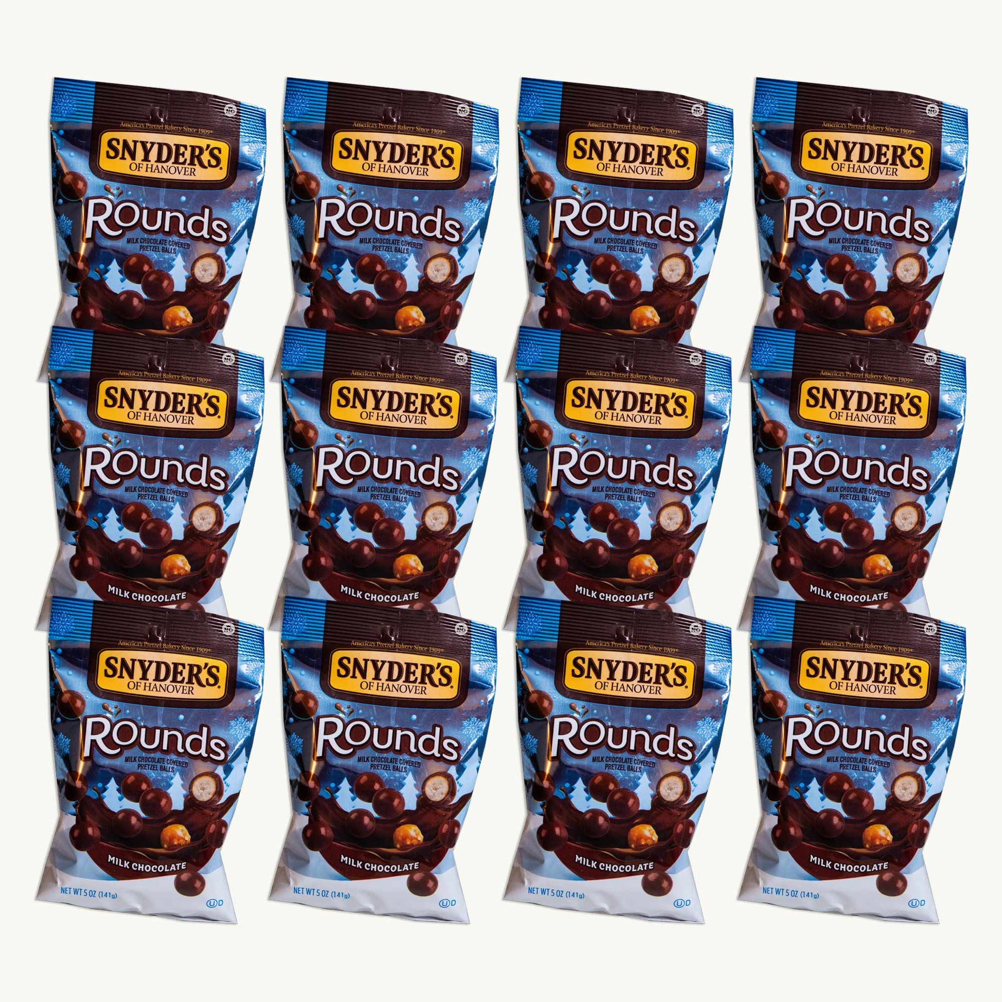Snyder’s Rounds Christmas Chocolate Covered Pretzel Balls deliver the irresistible combo of creamy milk chocolate and salty pretzel crunch—shaped into fun, poppable bites. Coated generously for rich holiday indulgence, these seasonal treats make an easy win for gifting, snacking, or adding to dessert trays. Festive, sweet, and ready for the holidays!
