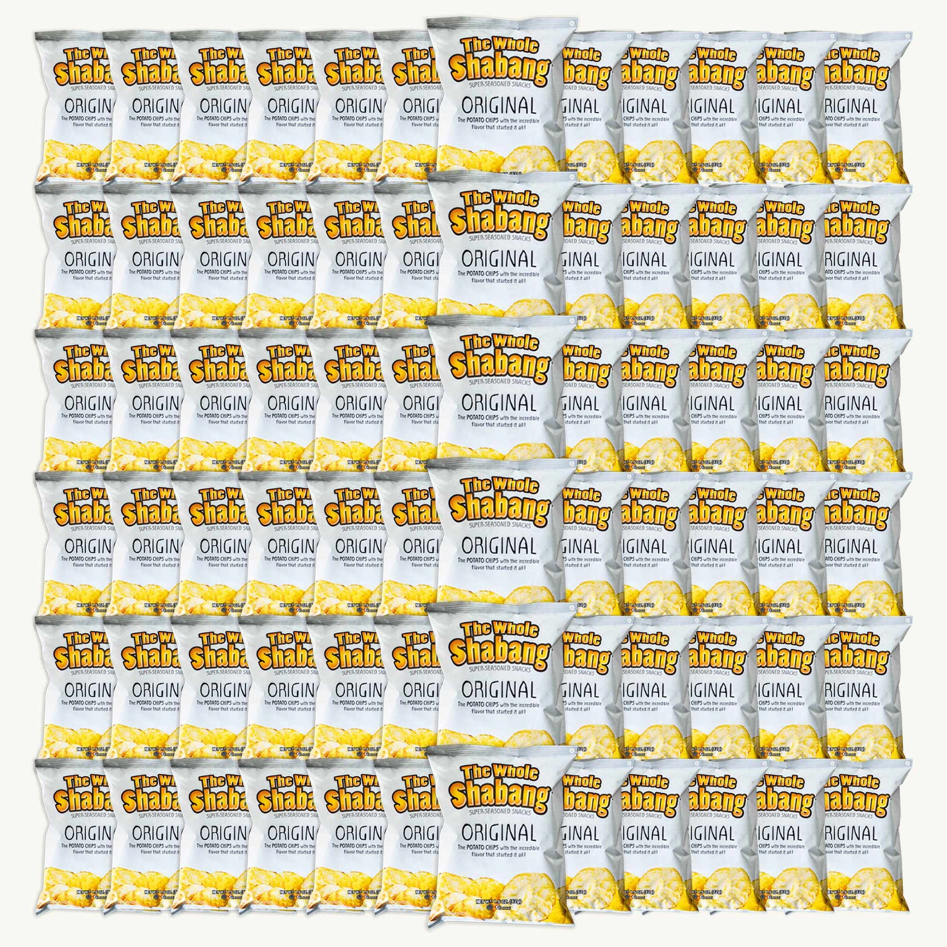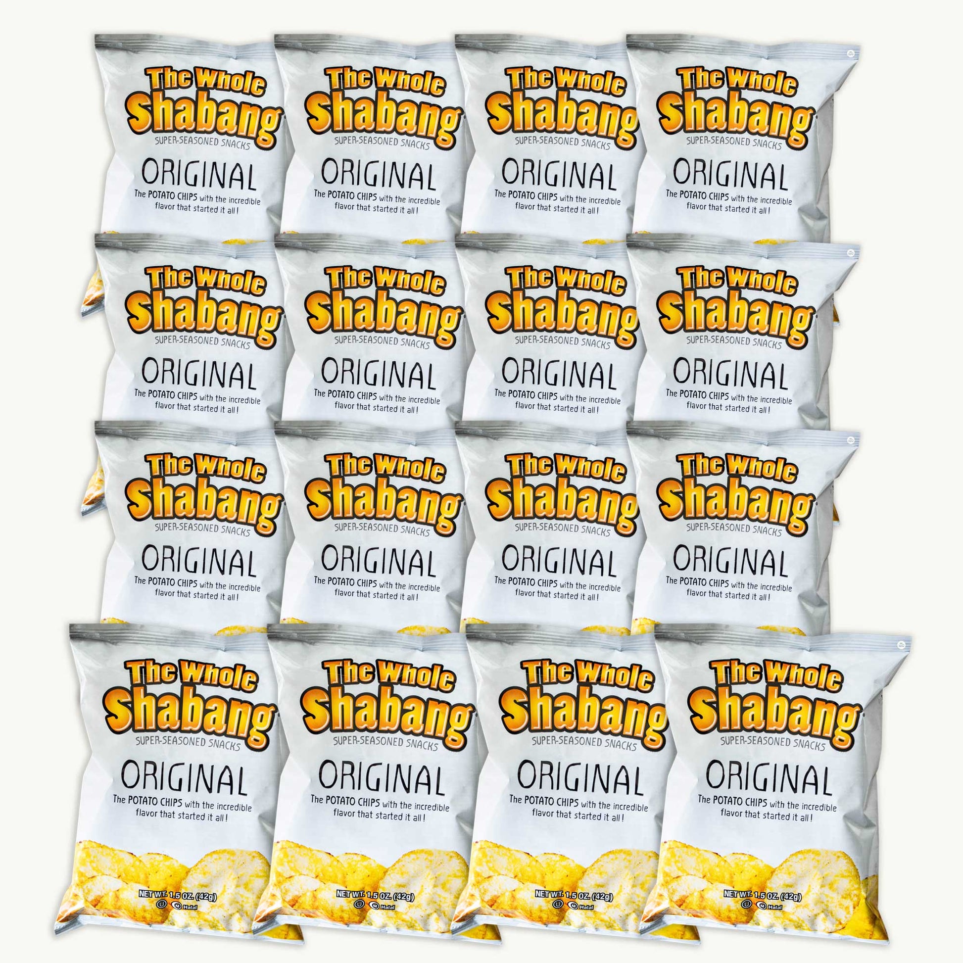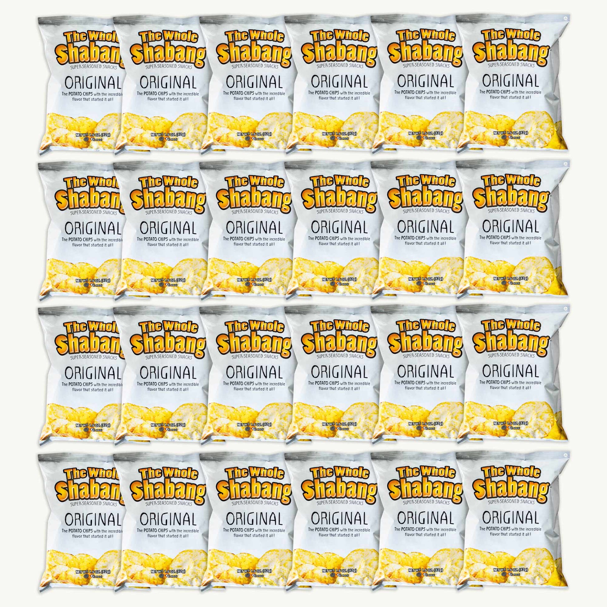 The Whole Shabang Original Potato Chips deliver a uniquely bold and tangy flavor that has garnered a dedicated following. Initially available exclusively through prison commissaries, these chips combine a medley of savory, tangy, and spicy seasonings, offering an "all-dressed" taste experience that stands out from typical potato chips. Each 1.5oz bag is perfectly portioned for individual snacking, making it ideal for lunchboxes, road trips, or a flavorful snack on the go.