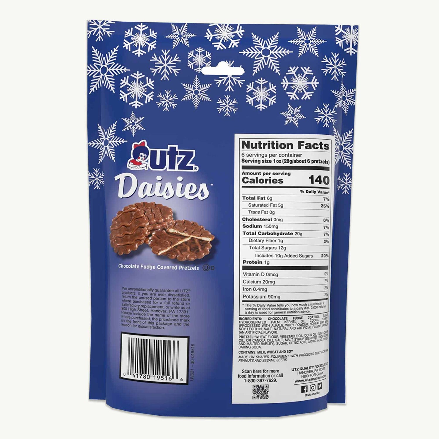 Celebrate the holidays with this irresistible Utz Christmas Snack Bundle β a trio of crunchy, chocolatey treats that bring joy to every bite. Indulge in the rich sweetness of Chocolate Covered Pretzels, the melt-in-your-mouth Daisies Fudge Pretzels, and the creamy-salty perfection of Peanut Butter Pretzel Bites. Perfect for gifting, sharing, or cozy snacking by the fire β this holiday-ready set delivers the ultimate combination of flavor, texture, and cheer.