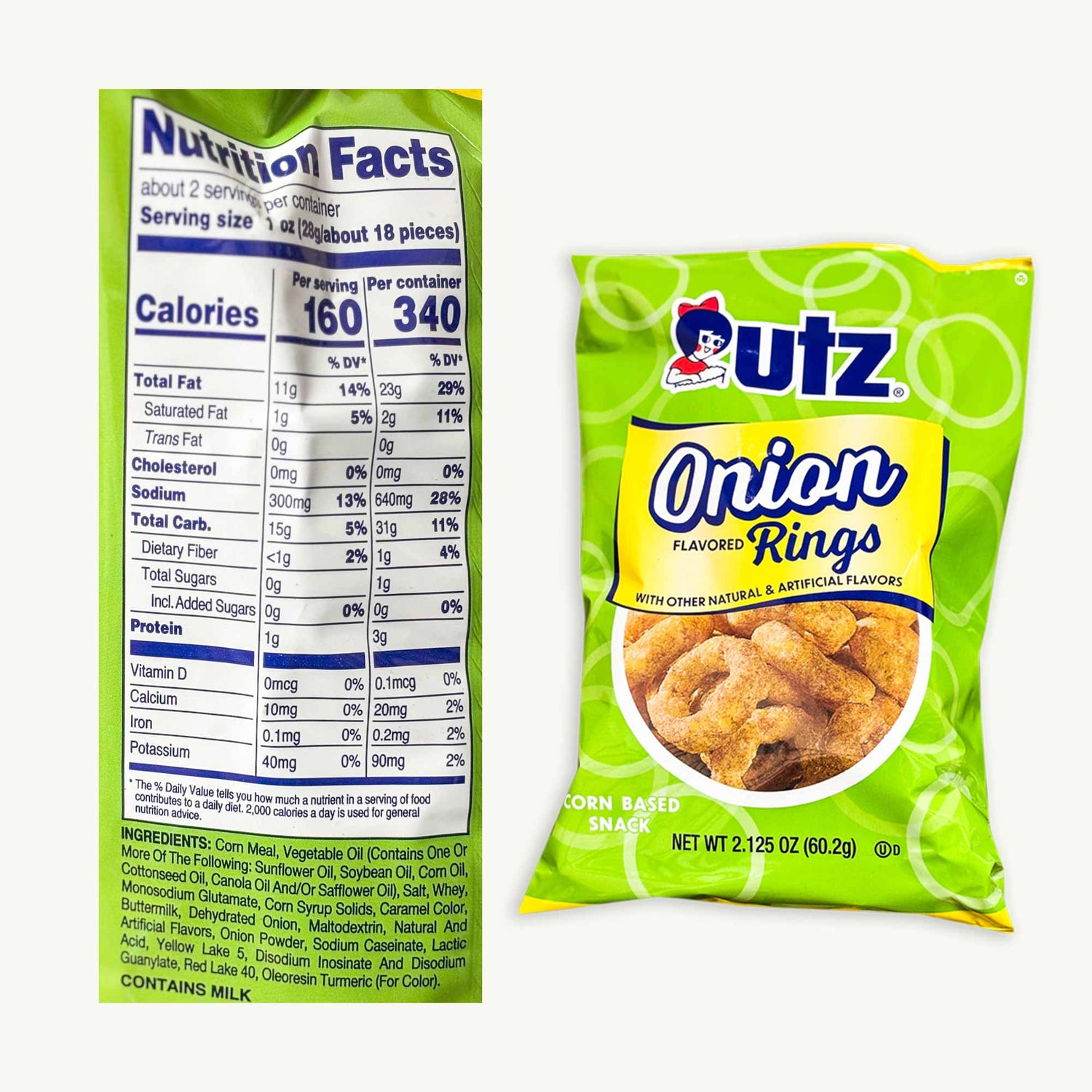 Utz Onion Rings are airy, crunchy snacks made from cornmeal and seasoned with a savory onion blend. Packed in a convenient 2.12oz bag, these golden rings offer a satisfyingly salty bite that’s great for lunches, road trips, or whenever you’re craving a fun and flavorful snack.