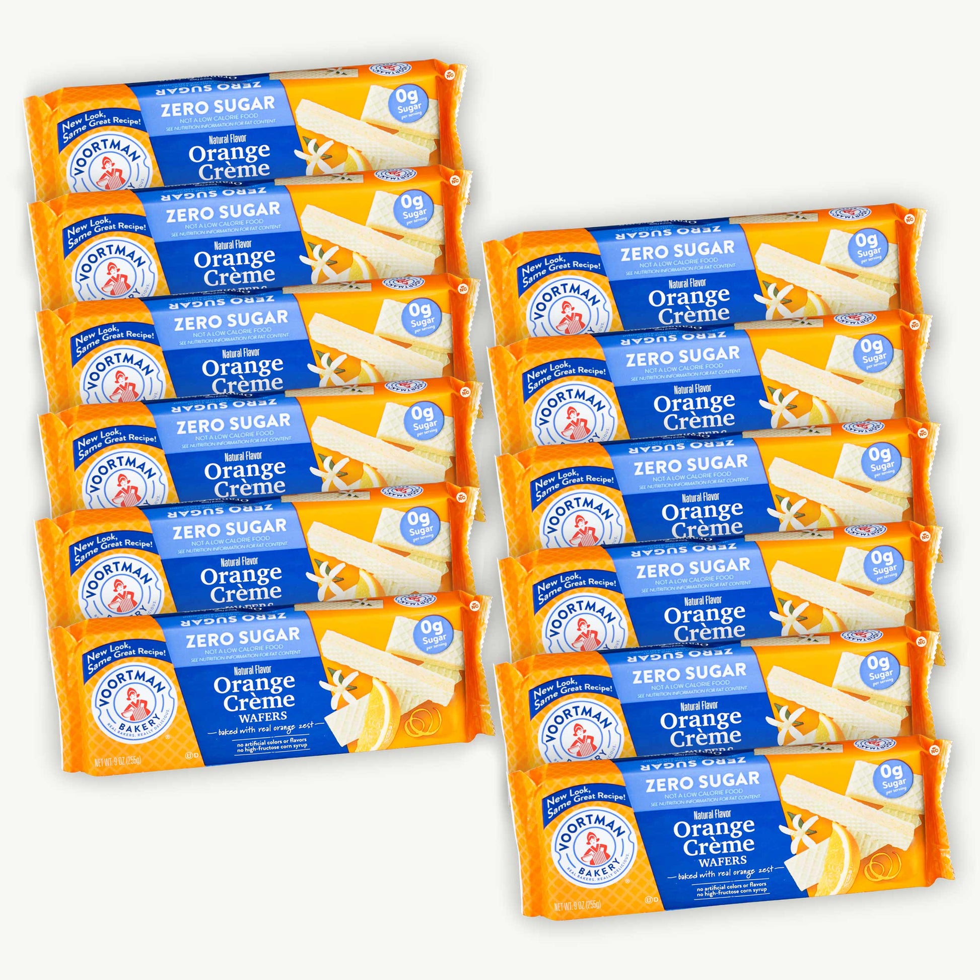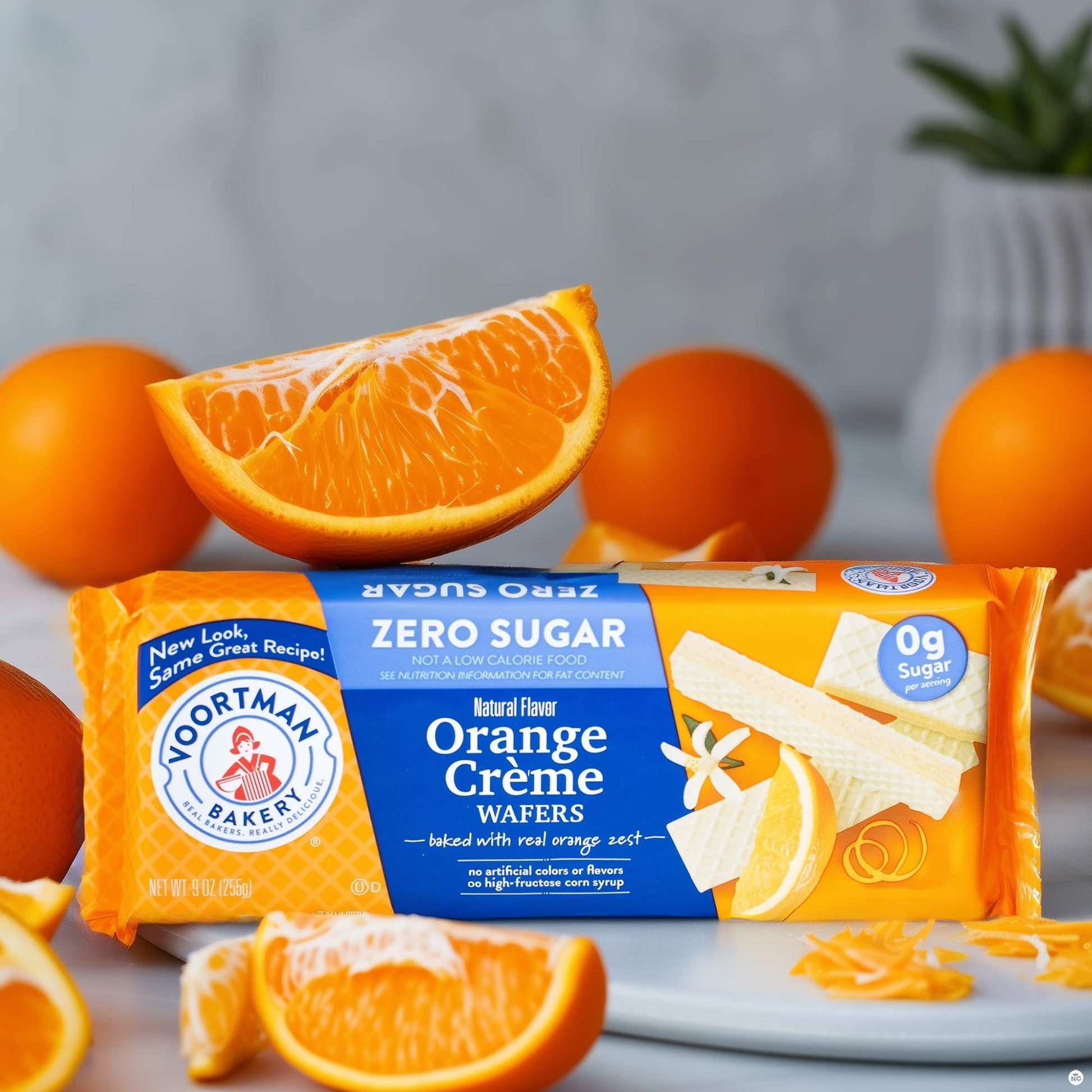 Voortman Orange Cream Sugar-Free Wafers bring a bright and creamy citrus flavor to a classic crispy treat. This 9oz bag features light, crunchy wafers layered with smooth, sweet orange crème filling, delivering the perfect balance of citrusy zest and creamy indulgence. Made with real ingredients and no artificial flavors, colors, or high-fructose corn syrup, these wafers are a delicious sugar-free snack.