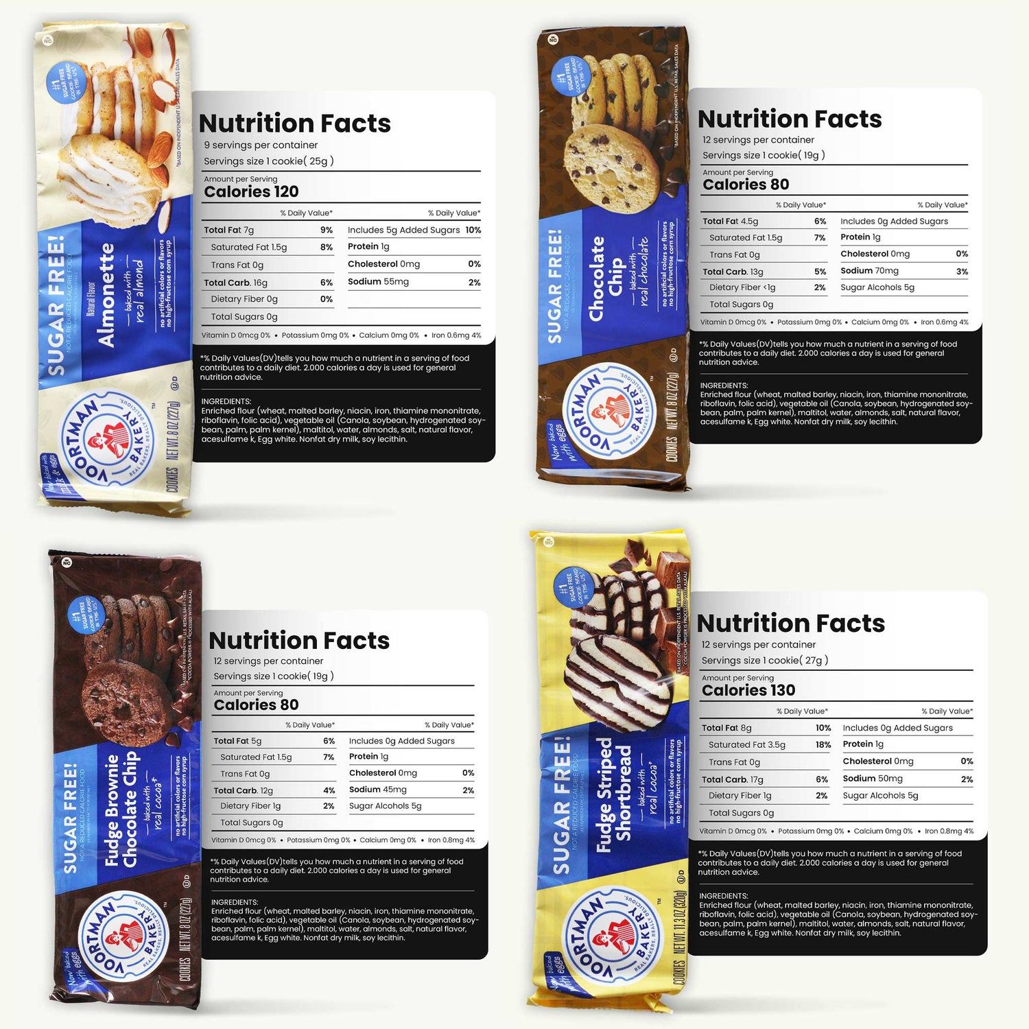 Enjoy all eight top Voortman sugar-free cookie flavors in one convenient bundle, from buttery shortbread to rich fudge brownie. Every cookie is baked with real ingredients and no added sugar. As a bonus, you'll also receive two organic Yerba Mate teabags (Lemon and Peach) to sip alongside your treats.