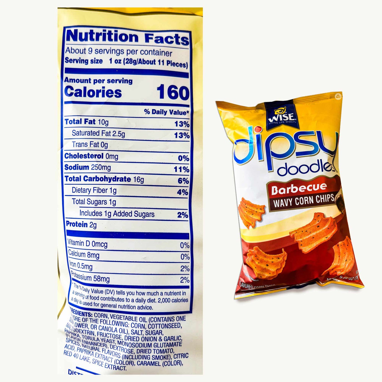 Enjoy the bold taste of Wise Dipsy Doodles BBQ Corn Chips, crafted from real whole-grain corn and seasoned with smoky, savory barbecue spices. Their distinctive wavy shape delivers maximum crunch and is ideal for scooping your favorite dips. Packed in a generous 9.25oz bag, these gluten-free chips are perfect for gatherings or anytime snacking.